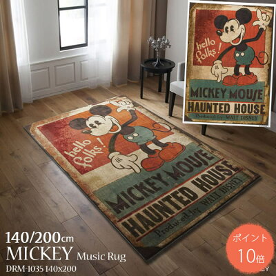 ポイント最大37倍&500円クーポン!お買い物マラソン★Vintage SERIES MICKEY Music RUG ミュージックラグ DRM-1034 ラグ・マット ディズニー Disney size140×200cm 床暖対応 防ダニ加工 敷物 日本製