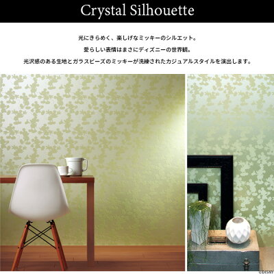 ディズニープレミアムコレクション壁紙 disny ルノン ホワイト/イエローグリーン 巾92cm×12m巻 大人ディズニー メタリック 不織布壁紙 フリース ラググジュアリー オシャレ ミッキー グリッター キッズルーム シルエット