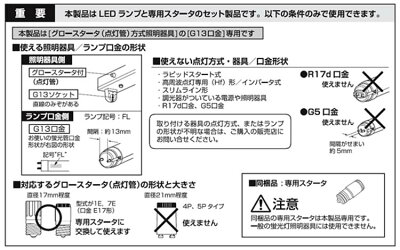 グロースターター式器具・FL蛍光灯専用です。