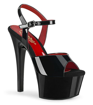 PLEASER【取り寄せ】プリーザー・アスパイアーインナーレッド厚底エナメルサンダル/品番:ASPIRE-609-1/ASP609-1/15cmヒール/ドレス/キャバ嬢/ポールダンス/ダンス/衣装/厚底サンダル/レディース/ハイヒール/ピンヒール/レディース/靴/シューズ/エナメルブラック/黒