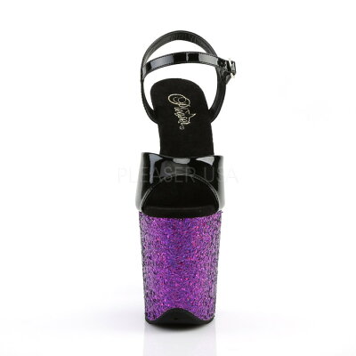 選べる靴用品プレゼント付 Pleaser プリーザー 取寄せ 厚底サンダル 超厚底 アンクルストラップ エナメルブラック 黒 パープルのグリッターラメ ハイヒール レディース 衣装 ポールダンス 靴 大きいサイズ キャバ パーティ FLAMINGO-809LG FLAM809LG/B/PPG