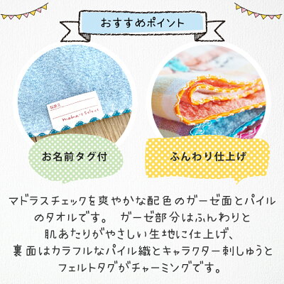 幼稚園や保育園では必須となるループ付きのハンドタオルです。