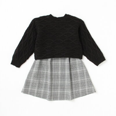[型番:9614325]横軸デザインのケーブル編みが新鮮なニットとワンピースのセットです。