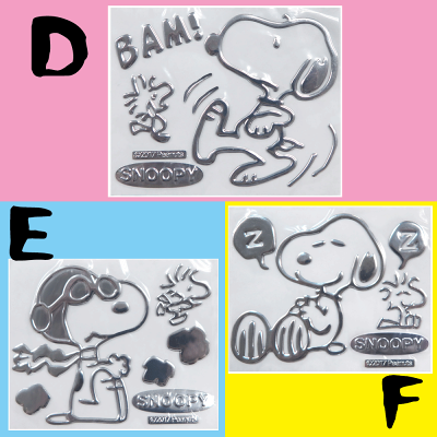 車やパソコンなどに貼ると本当にスヌーピーの製品みたいになって可愛いのでオススメです! 6種類ございますので(A)(B)(C)(D)(E)(F)の中からお選びください。