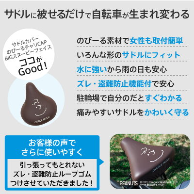 ご了承ください】 【メール便のみの発送となりますので代引き・宅急便は選択できません】 店長おすすめ商品!! 「大型サドル専用 のびーるチャリCAP Big スヌーピーフェイス / チャーリーブラウン フェイス」 控えめデザインで、自転車をよりかわいく、スマートに演出するサドルカバーとして、お客様から多くの支持を得ていてるサドルカバーです。