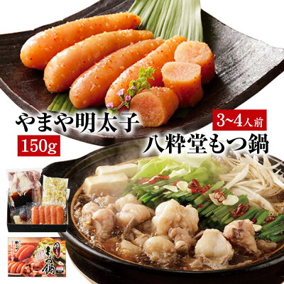 【ふるさと納税】やまや 明太子 八粋堂もつ鍋 あごだし醤油味 セット 3~4人前 博多もつ鍋 国産もつ 牛もつ モツ 鍋セット スープ付き ちゃんぽん麺 明太子 辛子明太子 福岡県 遠賀町 冷凍 送料無料
