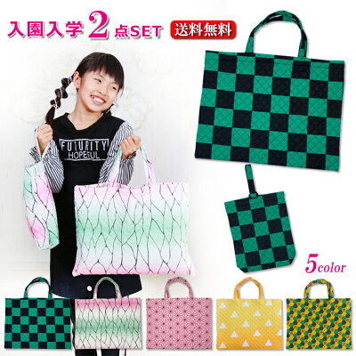 入園入学 レッスンバッグ シューズ袋 2点セット【送料無料】 キルティング 上履き入れ 通園バッグ トートバッグ 手提げ 鬼滅の刃柄 子供 お稽古バッグ シューズバッグ 入園入学グッズ 幼稚園 小学校 市松 男の子 麻の葉 女の子 しのぶ 保育園 即日発送 キッズ おしゃれ