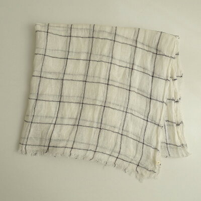 カラーはオフホワイトベースにほんのり紫がかったブラック系のチェック柄で、リネン様の薄手生地で仕立てられています。