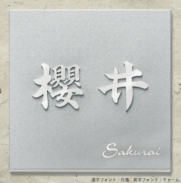 ステンレス表札 アーク&フリー09 アーク&フリー12 クリア05 クリア13 クリア14 クリア16 ハーモニー07 ライフ03 メインの漢字は3mm厚で圧巻!英字部分は、少し凸文字で感じ程浮き出てきませんよ。