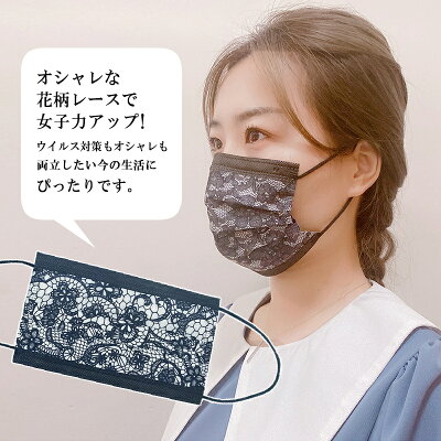 【 花柄レース使い捨てマスク(100枚入)】 花柄レースがオシャレな使い捨て不織布マスク。