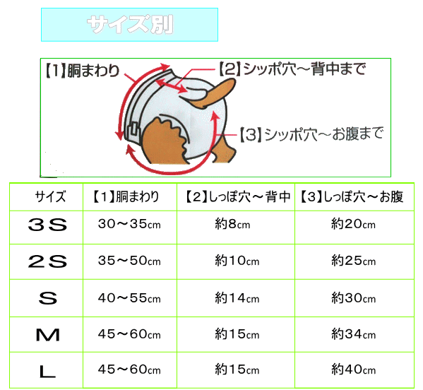 張り直し可能な、マジックテープでらくらく装着! 【納期:取寄1週間以内】 −−−−−−−−−−− ■推奨サイズ [胴回/しっぽ穴から背中/しっぽ穴からおなか] SSS[30-35cm/8cm/20cm]20枚入 SS[35-50cm/10cm/25cm]20枚入 S[40-55cm/14cm/30cm]20枚入 M[45-60cm/15cm/34cm]18枚入 L[45-60cm/15cm/40cm]16枚入 −−−−−−−−−−− ■他にもあるよ! どっさり1箱送料無料コチラ7800円 −−−−−−−−−−− 中国産【販売:ペットライブラリー(株)】