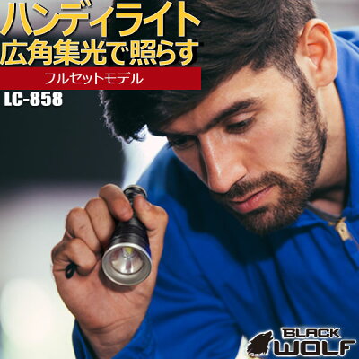 【フルセット】ハンディライト LED コンパクト 仕事 プロ 夜釣り 小型 小さい 登山 釣り 最強 強力 懐中電灯 充電式 USB バッテリー 防水 自転車 高輝度 小型 防災 明るい LC-858 mini-ZOOM ズーム BLACKWOLF ブラックウルフ