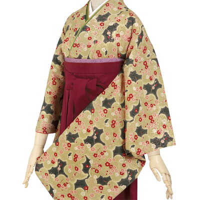 【商品番号】RG058 【商品名】袴 レンタル|ベージュ&濃緑 雲取梅 【ブランド】- 【適応サイズ】標準サイズ ●バスト:〜95cm 【着物寸法】 ●身丈:102cm ●袖丈:76cm ●裄:66cm ※身長が165cm以上の方は裄丈をご確認ください。
