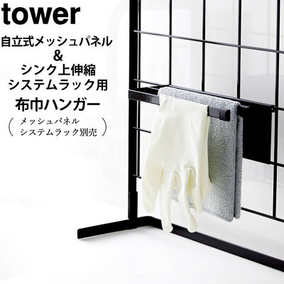ふきん掛け ふきん ハンガー 自立式 メッシュパネル & シンク上 伸縮 システムラック 用 布巾ハンガー tower タワー 【 クッチーナ 】 ふきんかけ おしゃれ メッシュパネル 収納 モノトーン 山崎実業 YAMAZAKI 雑貨 おしゃれ クリスマス