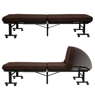 組み立て不要『完成品』の折りたたみベッド!従来のベッドよりマット面の高さが高いハイタイプで膝に負担のかかりにくい構造です。