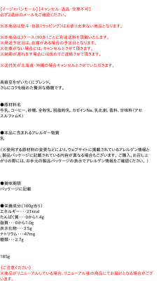 ●原材料名 牛乳、コーヒー、砂糖、全粉乳、脱脂粉乳、カゼインNa、乳化剤、香料、甘味料(アセスルファムK) ●本品に含まれるアレルギー物質 乳 (※使用する原材料の変更などにより、ウェブサイトに掲載されているアレルゲン情報と、製品パッケージに記載されている内容が異なる場合もございます。