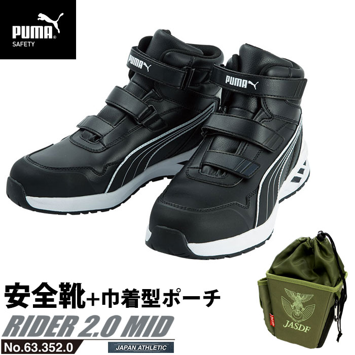 安全靴 作業靴 ライダー 28.0cm ブラック プロスニーカー 2.0 ミッドカット 巾着型ツールポーチ付き PUMA(プーマ) 63.352.0 ( 2021最新作 アスレチック RIDER スニーカー ワーキングシューズ 安全シューズ ベルクロシューズ 先芯入り )