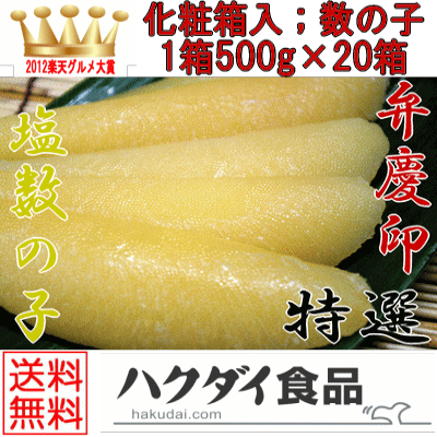 【20箱】【塩数の子弁慶:特々大500g(12本~9本)×20箱】【送料無料】【冷蔵便】業務用特々大サイズ!数の子が化粧箱入り!かずのこ♪カズノコ送料無料(本州)、北海道は450円、四国は300円、九州は450円、沖縄は1960円の追加送料がお客様負担となります。