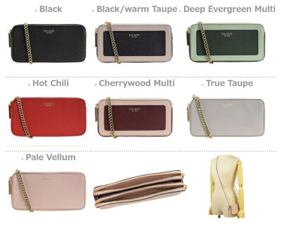 ブランド ケイトスペード/KATE SPADE スタイル ショルダーウォレット 品番 PWRU7132 素材 レザー カラー ◆Black/001 ◆Black/warm Taupe/106 ◆Deep Evergreen Multi/378 ◆Hot Chili/611 ◆Cherrywood Multi/626 ◆True Taupe/896 ◆Pale Vellum/959 金具ゴールド サイズ(約) 約高さ9x幅18xマチ3.5cmショルダー約126cm(取外可) 重さ(約) 約300g 仕様 開閉 :マグネット式外側 :ファスナーポケット(内カードポケット6) 付属品 箱なし、保存袋なし *掲載商品は実店舗及び他店舗でも同時販売しております。