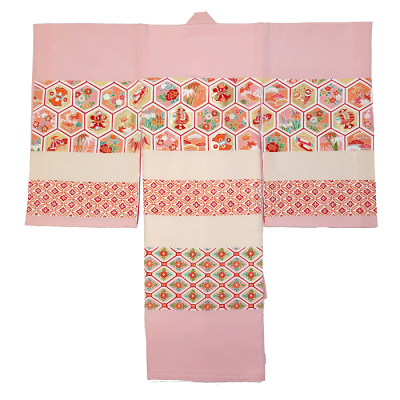 赤ちゃんにとって当時の正装とは内着に産着(初着・祝い着・掛け着ともいう)を掛けるといったものです。