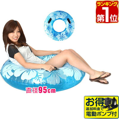 1年保証 浮き輪 大人 直径 95cm 取っ手付 ジャンボ浮き輪 大人用 浮輪 うきわ フロート ハイビスカス柄 海 プール 川 海水浴 夏 夏休み スポーツ アウトドア おもちゃ 水遊び 水あそび おしゃれ かわいい 選べる空気入れ・電動ポンプセットも ●[送料無料]