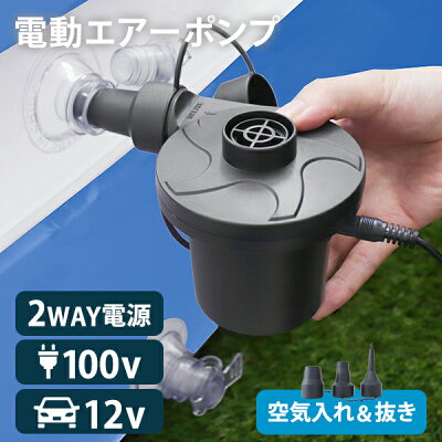 1年保証 電動ポンプ 電動エアーポンプ 電動 ポンプ 空気入れ AC電源 100V 家庭用コンセントタイプ 専用ノズル3種付き PSE取得 吸気 排気 給排気 簡単 便利 ビニールプール・浮き輪・フロート・エアーベッドなどに アウトドア レジャー FIELDOOR ■[送料無料]