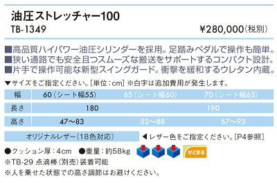 TB-1349 油圧ストレッチャー100 高品質ハイパワー油圧シリンダーを採用。