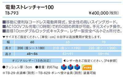 TB-793 電動ストレッチャー100 移動に便利なコードレス電動昇降式。