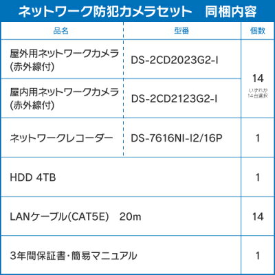 防犯カメラ 監視カメラ 14台 屋外用 屋内用 から選択 防犯カメラセット 監視カメラセット 16ch POE内蔵 ネットワーク 録画機 /HDD4TB付属 FIXレンズ 赤外線付き バレット型 ドーム型 ネットワークカメラ IPカメラ 遠隔監視可