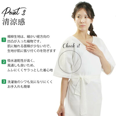 クレープ地(楊柳地)の生地は、肌との接触面が少なく汗のべたつき感も少ないです。