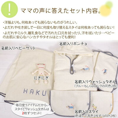何度もその名前を呼ばれて育っていく赤ちゃんにも大切な想いを込めて名前を付けたお母さんやお父さんにもきっと、ずっと、喜んでもらえる名前入りのギフトセットです。