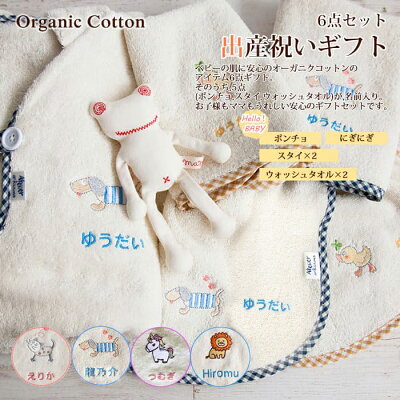 出産祝い 名入れ オーガニックコットン 6点 ギフトセット 男の子 女の子 1歳 2歳 3歳 誕生日プレゼント