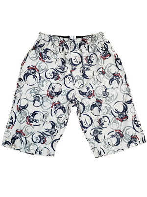ロングトランクス ひざ丈 ステテコ 日本製 ルームウェア 部屋着 ハーフパンツ 父の日 ギフト 誕生日 プレゼント 和柄 だるま柄 ベージュ 便利な後ろポケット付 M L 綿100% 前開き