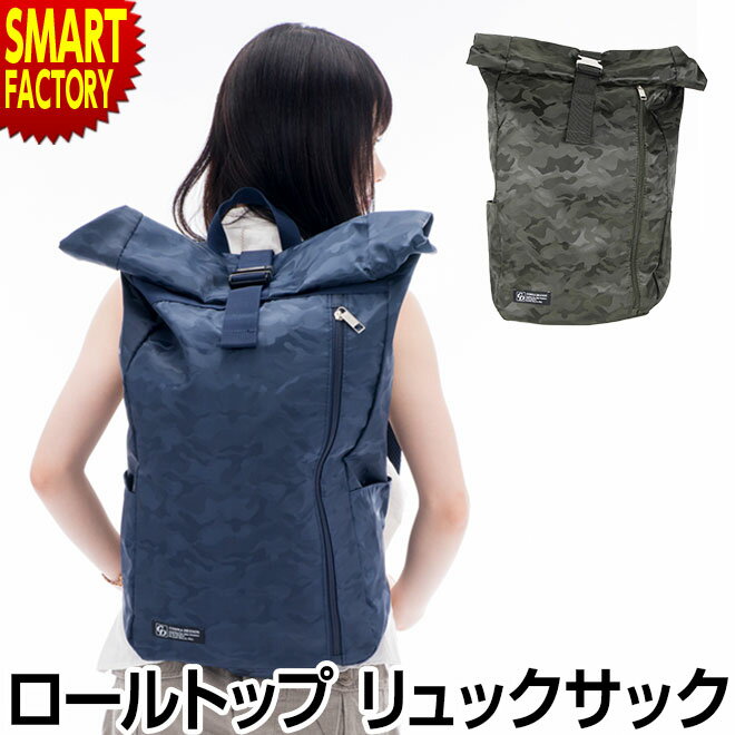 リュック 迷彩 大容量 ロールトップ シンプル ネイビー 青 カーキ カモフラ バッグパック 通学 進学 メンズ レディース プレゼント カジュアル リュックサック バッグ カバン コンナデザイン