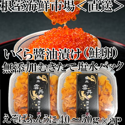 【ふるさと納税】根室海鮮市場<直送>無添加エゾバフンウニ塩水パック(赤系)40〜50g×2P、いくら醤油漬け(鮭卵)80g×1P A-28188