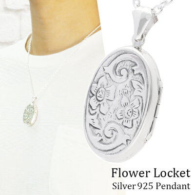 ロケットペンダント 大きめ 柄入り だ円 ロケット シルバー 925 写真 ネックレス 花 結婚 出産祝い 結婚記念日 誕生日 プレゼント スターリングシルバー ギフト 女性 贈り物 両親 SV925 銀製 クリスマス 母の日 シルバー925