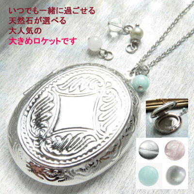 ロケットペンダント 大ぶり 大きめ アンティーク柄 リバーシブル だ円 オーバル ロケット 写真 天然石 チェーン ネックレス 水晶 ローズクオーツ アマゾナイト 記念日 誕生日 プレゼント ギフト 女性 贈り物 ペンダント メモリアル お祝い