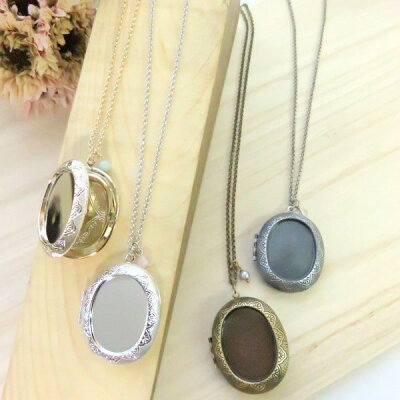 当店オリジナルの、仕様にこだわったアクセサリー単品としても上質のデザインを目指したシリーズ!美しいボリューム感あるオーバル型のロケットペンダント!空枠なのでお好きなパーツや、絵などで枠内ご自由にレイアウトください大ぶりなので、パーツやモチーフも色々お手持ちの絵やパーツに合いやすいです。