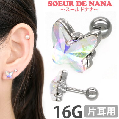 かわいい ボディピアス 16G [Soeur de Nana] オーロラジュエルバタフライバーベル ボディーピアス 軟骨ピアス トラガス ヘリックス