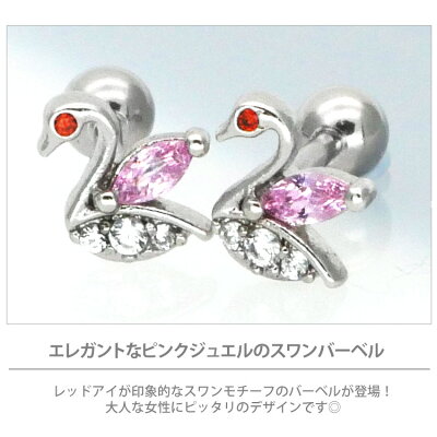 Item Info エレガントなピンクジュエルのスワンバーベルピアス レッドアイが印象的なスワンモチーフのバーベルが登場しました。