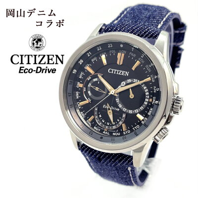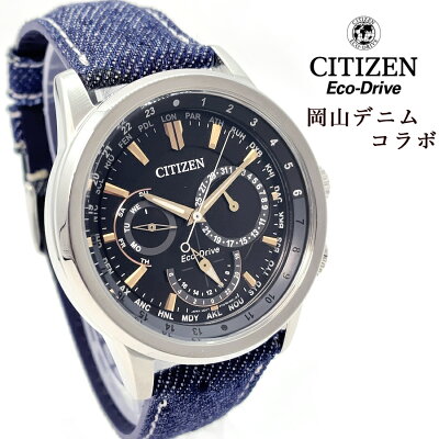 あす楽 送料無料 岡山デニム 当店限定CITIZEN シチズン メンズ 腕時計 BU2020-70E EcoDrive エコドライブ アナログ ソーラークォーツ ウォッチ マルチカレンダー デイデイト ワールドタイム 24時間インジケーター ステンレスケース デニムベルト ブラック シルバー