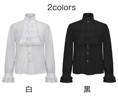 シャツ トップス メンズ 中世ヨーロッパ ルネッサンス 無地 レースアップ コスプレ 長袖 フリル レース スタンドカラー ジャボ 皇室 王子 衣装 舞台衣装 王子様 貴族 イベント 文化祭 大人 演奏会 撮影用 ステージ衣装 ハロウィン S M L XL 2XL 白 黒 d9010d4d4d4/代引き不可