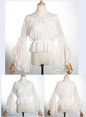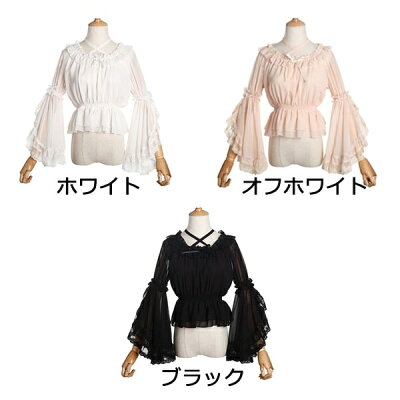 ロリータ ブラウス ゴスロリ シフォン レース 黒ロリ 白ロリ 姫ロリ 夏 シャツ ゴシック 貴族風 オフホワイト ブラック かわいい 学園祭 文化祭 パーティー 演奏会 演劇 貴族服 フリーサイズ dk026x1x1zo