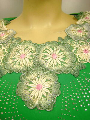 コーラス 衣装 ブラウス 社交ダンス トップス 花刺繍ジルコントップス襟元豪華刺繍トップス グリーン M・Lサイズ