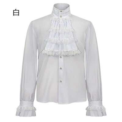 シャツ トップス メンズ 中世ヨーロッパ ルネッサンス 無地 レースアップ コスプレ 長袖 フリル レース スタンドカラー ジャボ 皇室 王子 衣装 舞台衣装 王子様 貴族 イベント 文化祭 大人 演奏会 撮影用 ステージ衣装 ハロウィン S M L XL 2XL 白 黒 d9010d4d4jc