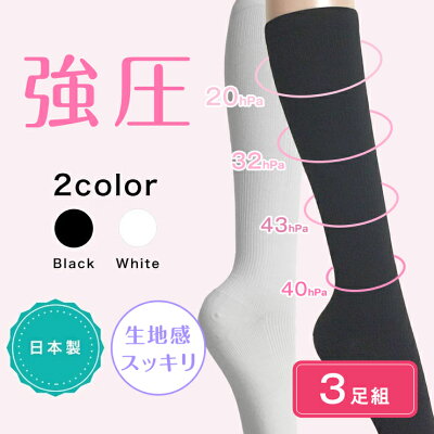【リニューアル】着圧ソックス(強圧)■3足組■ 日本製 すっきり 綿混 スリムビューティー しっかり強圧 強力 引き締め 美脚 浮腫み 綿混合タイプ むくみ レディース ハイソックス 膝下 膝丈 靴下 段階着圧 圧着 下肢静脈 着圧 強め【ポスト投函 送料無料】