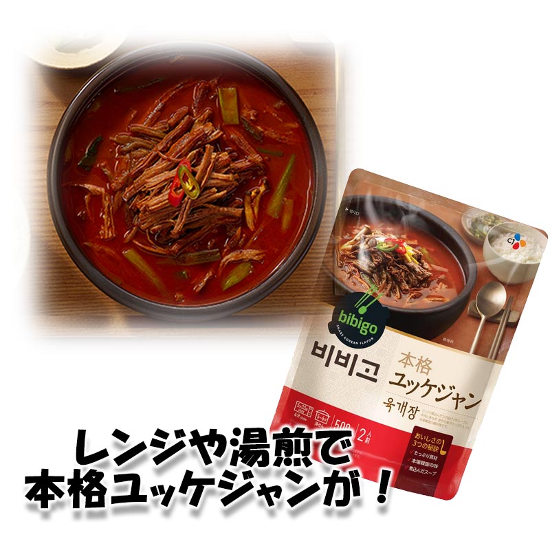 BIBIGO 本格ユッケジャン 500g x 18袋 【商品の特徴】 ・500g x 18袋 ・レンジや湯煎で簡単に食べられる本場のユッケジャン 長い時間丁寧に煮込んだ牛肉だしに唐辛子だれを加え、本場の深みある旨辛い味に仕上げました。