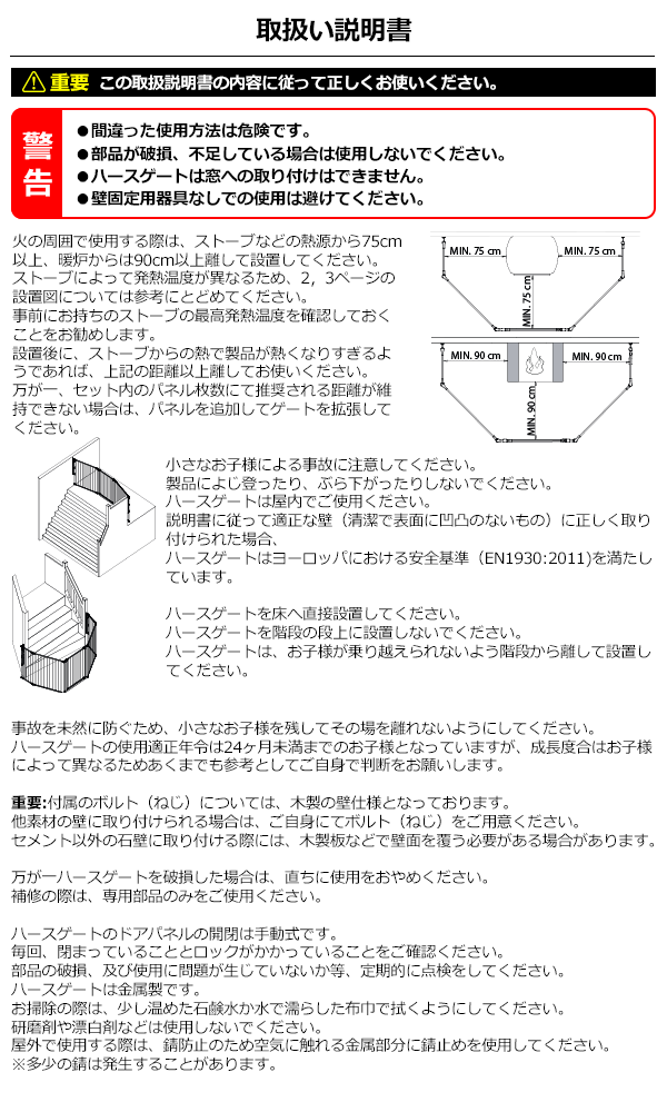 小さなお子さまを暖炉やストーブの危険から遠ざけることはもちろん、 そのほか階段、玄関等への進入を防ぐフェンスとして、もしくは部屋の間仕切りなどにもお使いいただけます。