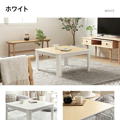 こちらはこたつテーブル単品の販売ページです ※こたつ布団は付属しておりませんので、予めご了承ください 追加料金についてのご案内 ●下記地域への配送をご希望の方※別途、追加送料が発生いたします 沖縄県離島 ご注文確認画面、楽天市場からのご注文受付メール配信時には、システムの都合上、追加料金の金額が反映されません 時間帯指定不可の商品です ※備考欄等でご指定いただいた場合でも、ご希望の時間に配送できませんので予めご了承ください 配送についての詳細はこちらよくある質問とその回答 代金引換不可の商品です ※システムの仕様上、お支払方法にて代金引換の選択が可能ですが、そのままご注文された場合、キャンセルさせて頂く場合がございます 送料無料(沖縄・離島見積り) 商品概要 カラー ホワイト(ナチュラルリバーシブル)、ブラック(ブラウンリバーシブル) サイズ 本体…幅70㎝×奥行き70㎝×高さ38.5㎝ ヒーターユニット…縦28.8㎝×横28.8㎝×高さ6.3㎝ コード長…3m(丸打コードタイプ) 材質 天板…MDF、低圧メラミン化粧板、UVコーティング 脚…PP樹脂 仕様 電源…100V 50/60Hz 消費電力…300W ヒーター寿命…約5000時間 特徴 省エネ 省エネ 長寿命 UVコーティング天板 安全設計 遠赤外線効果 足もとスッキリ コードフック付き オールシーズン対応 コンパクトサイズ オプション 取り換え用ヒーターは別途購入オプションとなります。