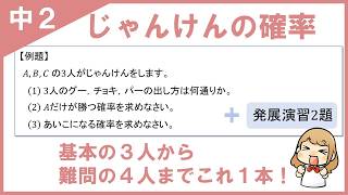 今回の動画は、 中2で学習する確率の単元から 「じゃんけんの確率」について。 しっかりと解けるように 練習しておきま …
